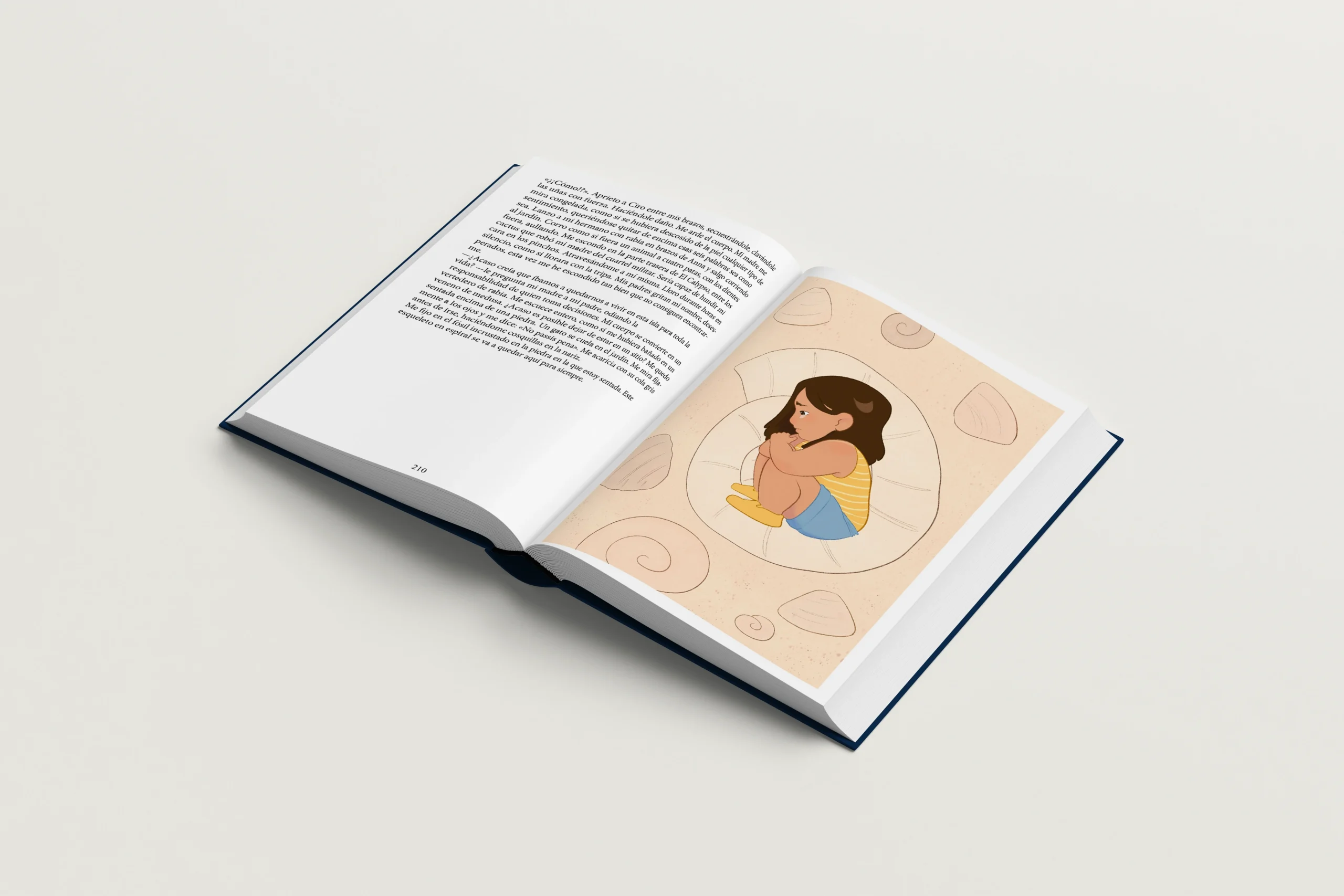Proyecto académico de ilustración de novela: se preparan 14 ilustraciones para acompañar el texto del libro, portada, contraportada y guardas, con un trabajo previo de estudio de estilo, paleta de color, diseño de personajes… El trabajo también implica la maquetación completa del texto para su impresión posterior y la preparación de mockups que permitan visualizar el trabajo final.