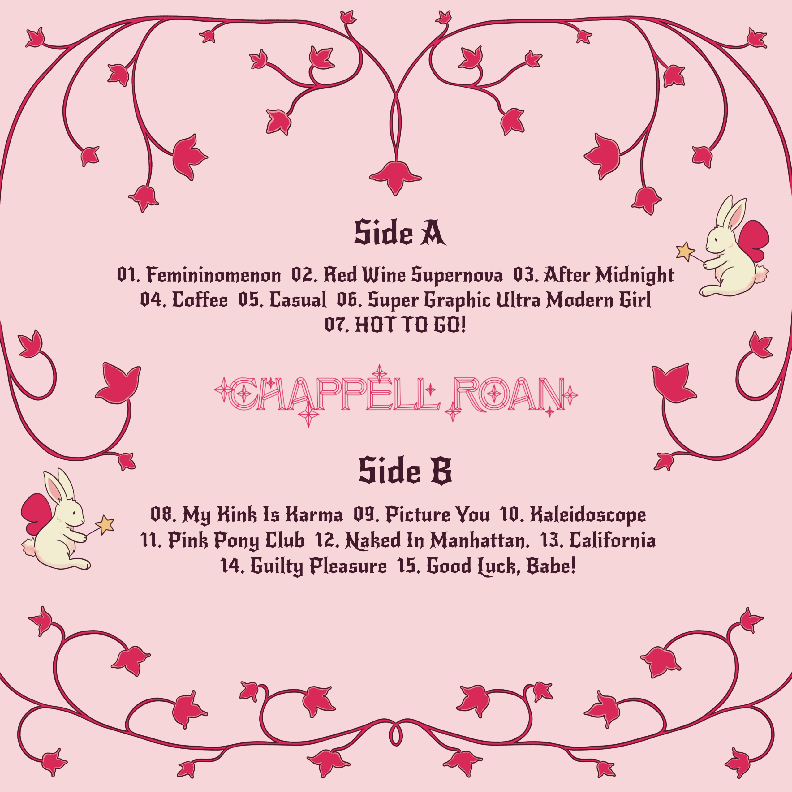 Proyecto académico donde se trabaja el diseño del packaging de un vinilo a nuestra elección. Se elige The Rise and Fall of a Midwest Princess, de Chappell Roan, para tratarlo con una estética de novela de fantasía medieval infantil, una mezcla de princesa y caballero andante para representar a la cantante.